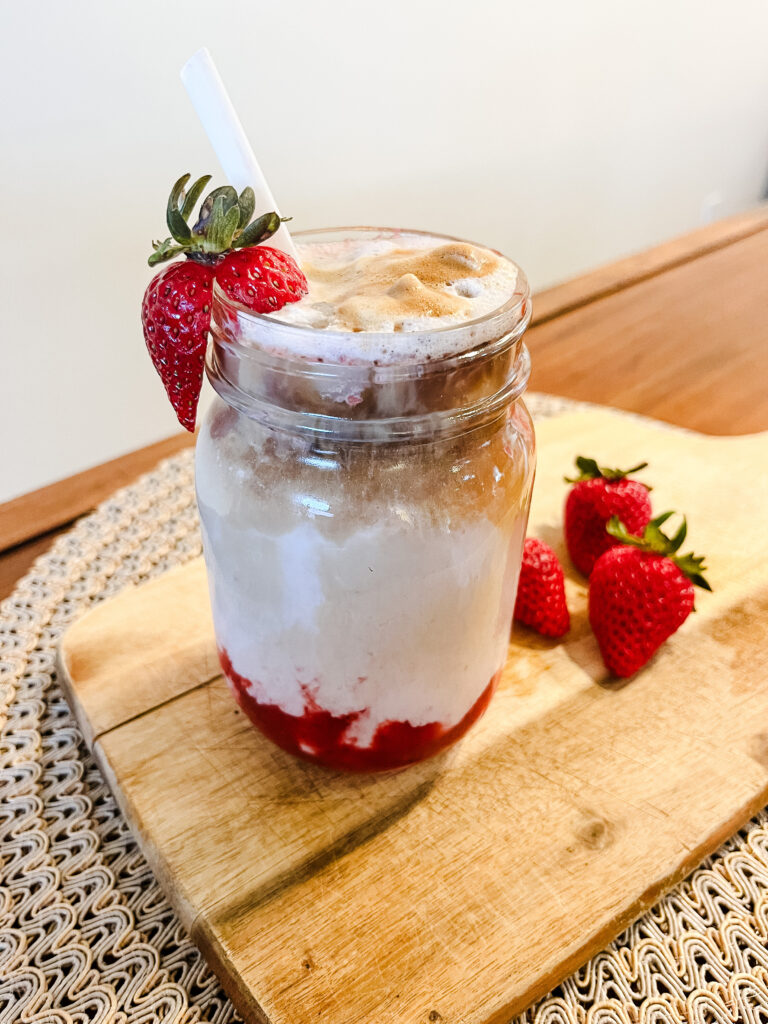This morning’s treat was a homemade strawberry iced latte, a delightful creation that has quickly become my summertime favorite. It’s a perfect blend of sweet and creamy, with the fresh strawberries adding a touch of brightness that feels just right for the season. Here’s how I make it: