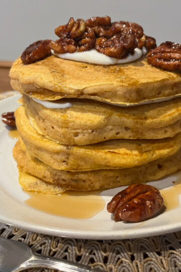 The crisp air, the colorful leaves, the cozy sweaters—fall is here! And what better way to celebrate the season than with a stack of Pumpkin Spice Pancakes, topped with Pumpkin Spice Glazed Pecans and luscious Cream Cheese Greek Yogurt topping ? It’s like a warm hug from […]
